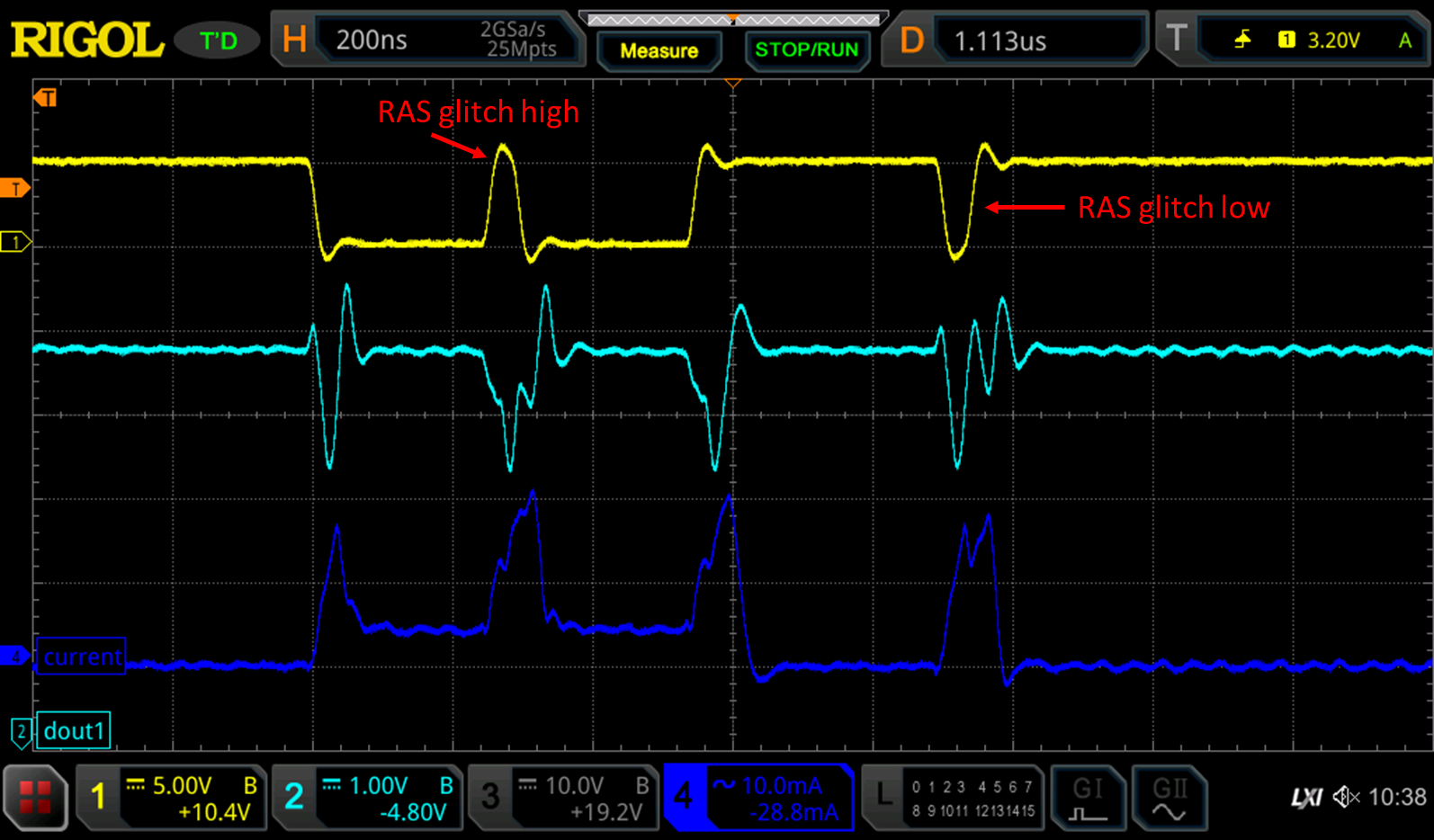 We are using the access pattern that I called “RAS glitch high” for this, as shown in the scope image below.