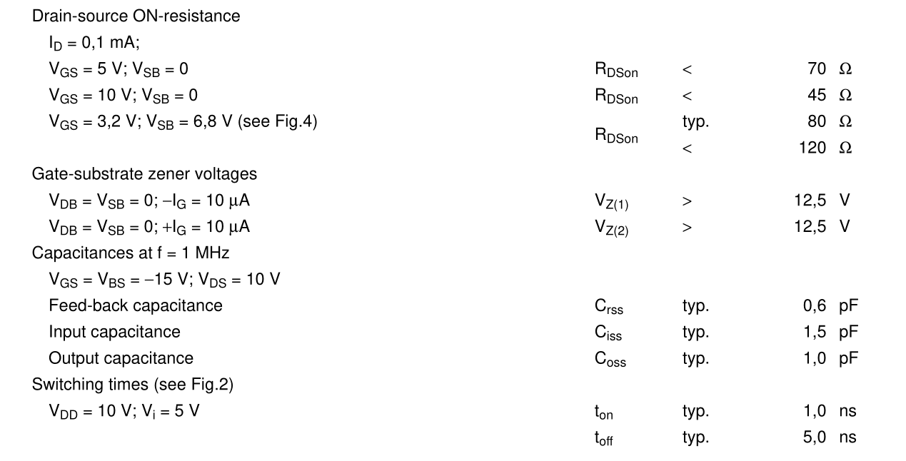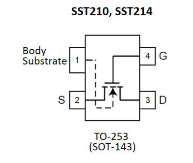 Not to be mixed up with the BSS83P, the BSS83 is a single n-channel mosfet with separate bulk connection in a small SOT23-like SMD package (SOT143). The switching time is <5ns and the input capacatiance only 1.5pF. A very suitable device that was once made by Infineon and Nexperia. But alas, it is out of production…