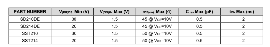 - $R_{\mathrm{DS(on)}} < 100\ \Omega$