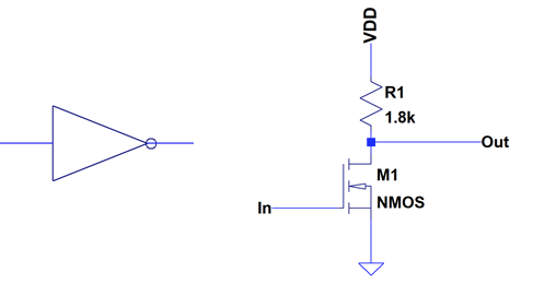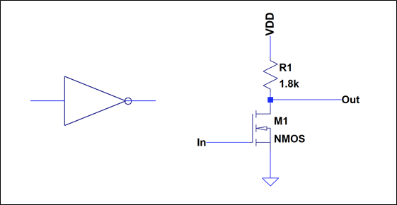 The practical implementations of these requirements can be easily explained by the NMOS inverter circuit.