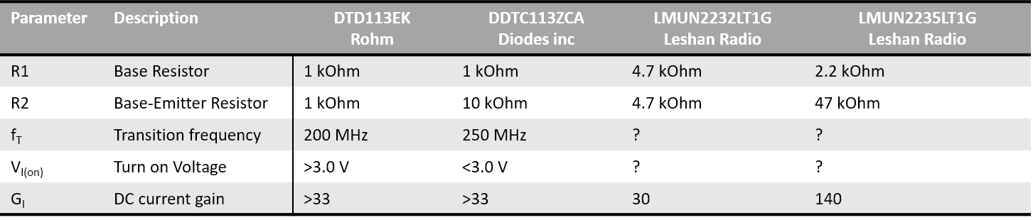What about 2020, sixty years later? Clearly, discrete logic is not within the focus of any transistor manufacturer anymore, so we have to pick what is available. What are important criteria (to me)?