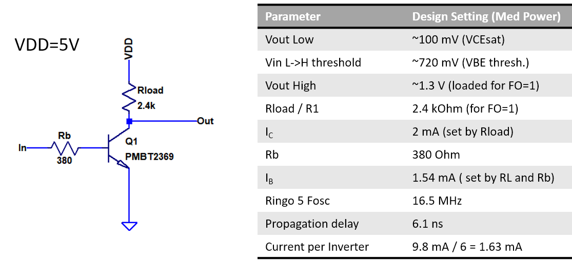 Minimum tpd of the MMBT2369 based RTL inverter is 6.8 ns, that of the PMBT2369 based inverter is 4.8 ns.