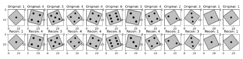 Since we also want to control the number of pips on the die, we also need to label the data that is fed in - that is where the conditional part in the CVAE comes from.