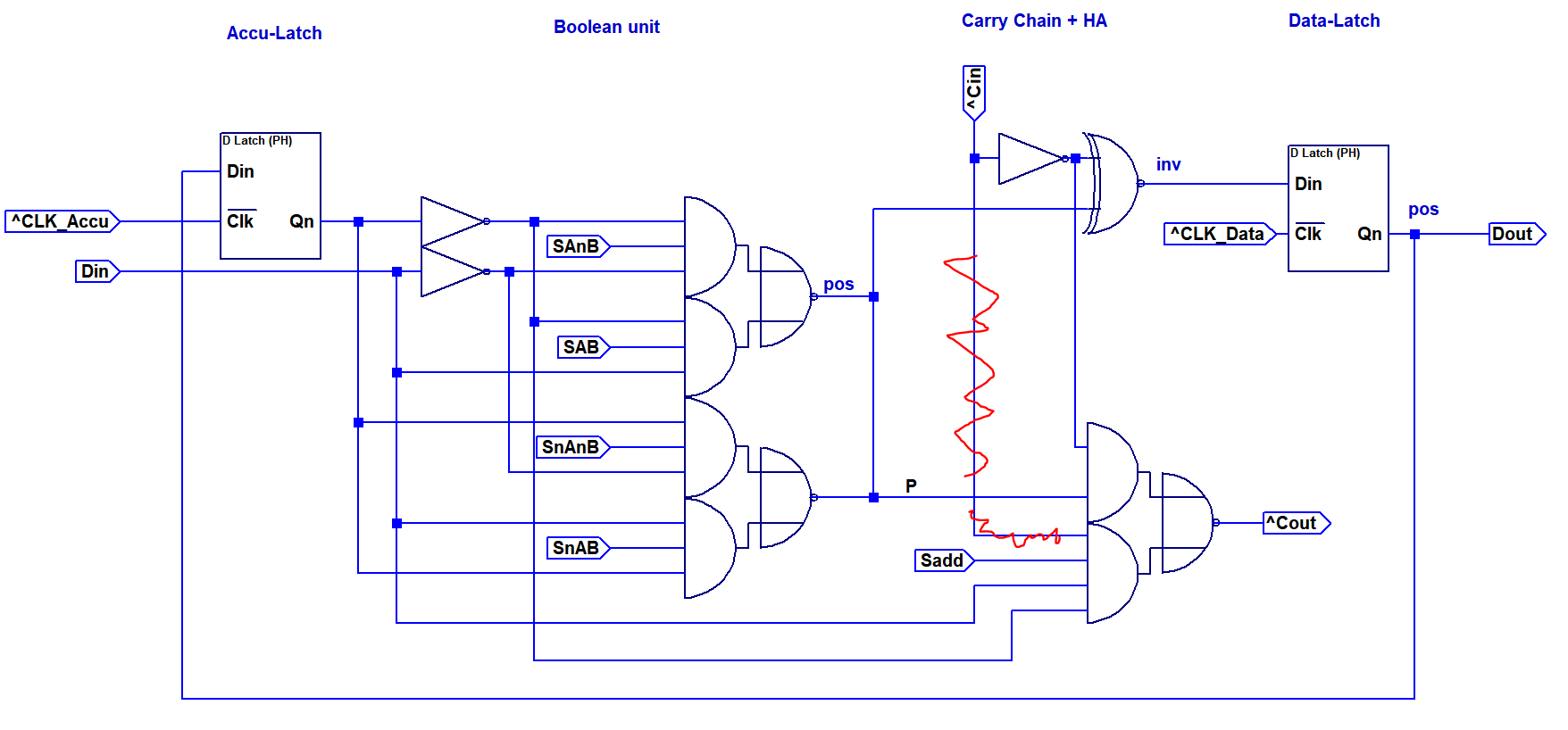 Removing this signal would have allowed to densify the layout significantly and also add the carry-chain inverter to the output, so the carry signal is non-inverting. But well, next time…