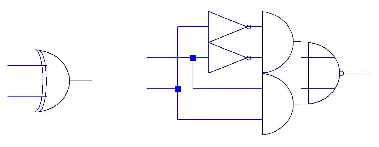 Another option is to use an AOI2 gate and two inverters. The number of components is almost the same as the NAND2 implementation, but now the propagation delay is only two gates. Furthermore, often inverted signals are alrady available as output from a previous stage. In that case, the inverters can be omitted.