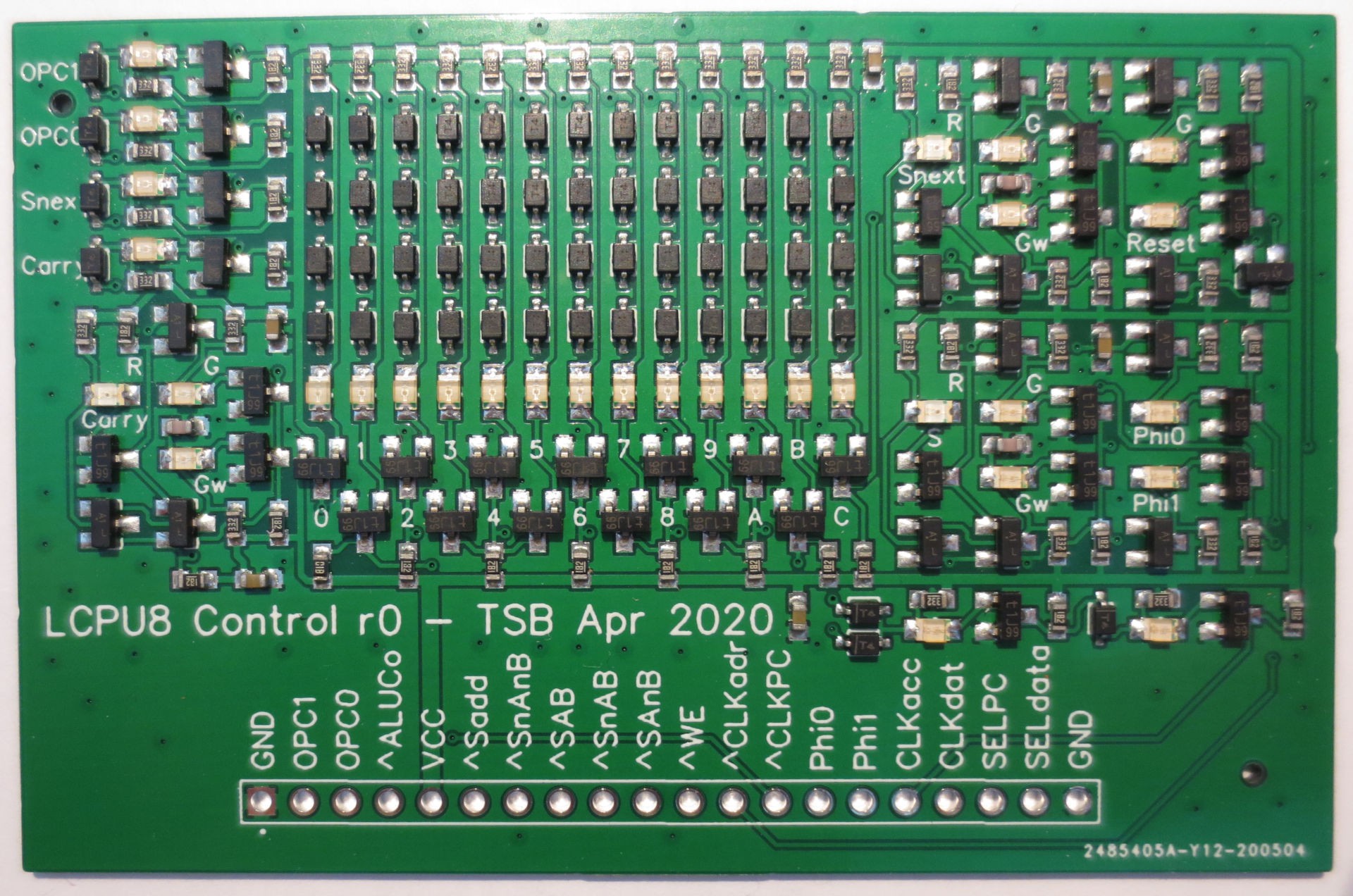 The control board itself has a few internal registes for carry and states and inputs for a two phase clock (phi1,phi2) and reset.