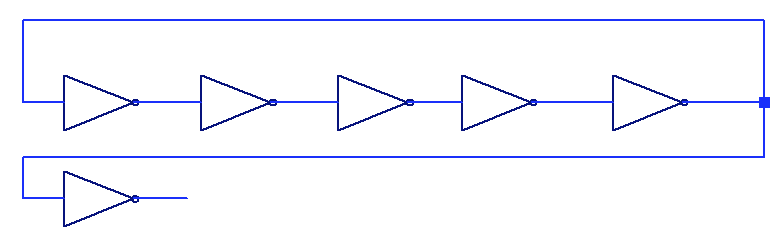 To test the propagation delay, I simulated a simple 5 stage ring oscillator.