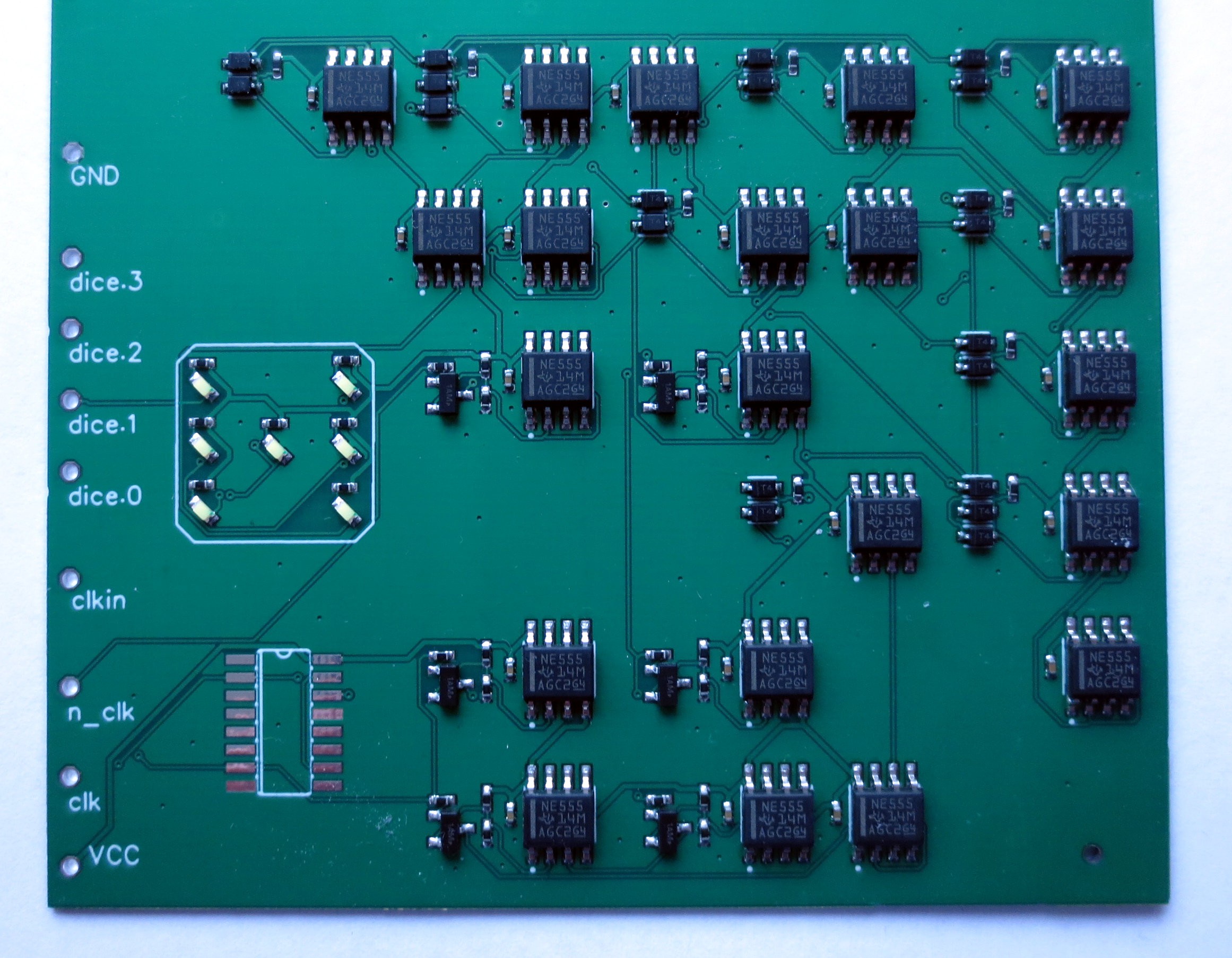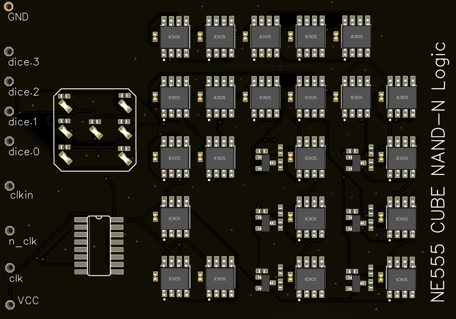 All said and done, see below for a short clip of the dice operating in NE555 logic!
