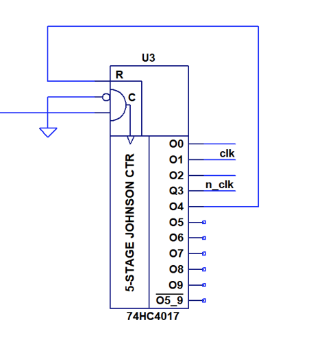 Well, now that the job of the CD4017 in the dice is taken by the NE555, what can we do with the CD4017? Indeed, there is a perfect match for using it has a generator for the two non-overlapping clocks: