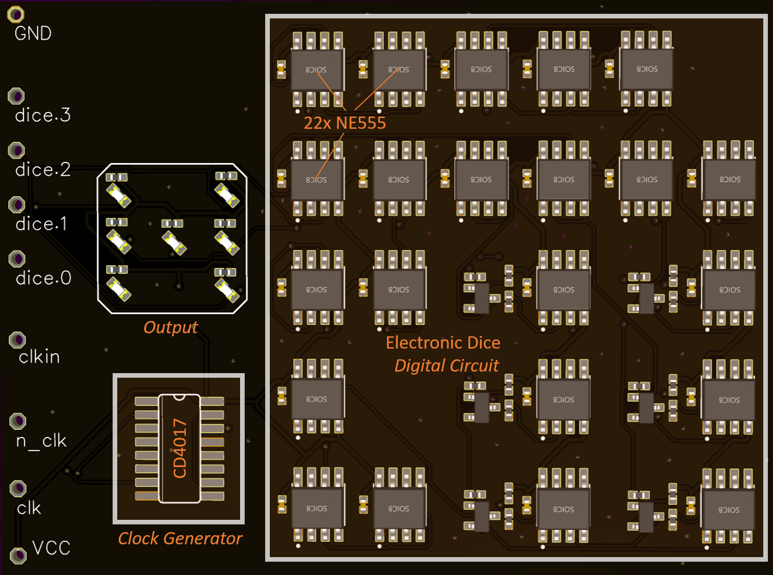 Well, i’d say it’s a bit more than a dice with the old role-models of NE555 and CD4017 require, but who are we to judge? Still small enough to comfortably build and test.