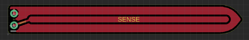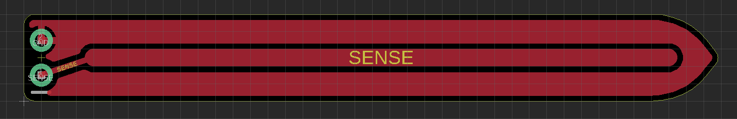 A much better approach is a capacitive sensor, for example as shown here. The sensing principle exploits the fact that water has a much higher (~80) relative dielectric constant than dry sol or air (~1). The sensing element consists of a planar capacitor that is directly inserted into the soil. This can be very easily realized by copper traces on a PCB that is insulated with solder resist. Coincidentally I found a sensing element that I designed years ago. The layout is shown here: