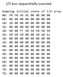 After proper initialization of the MCU peripherals, the I/O area back up is dumped via the serial port.