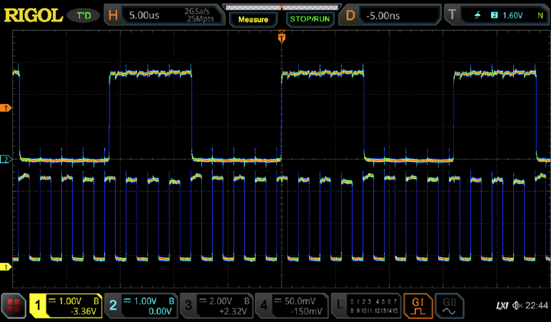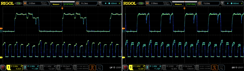 - 1 kOhm RL/RB is too low and would require introducing a proper clock signal distribution network.