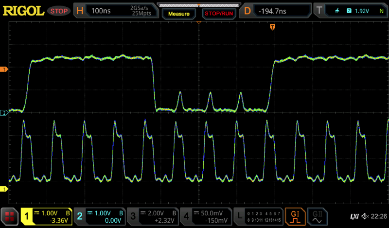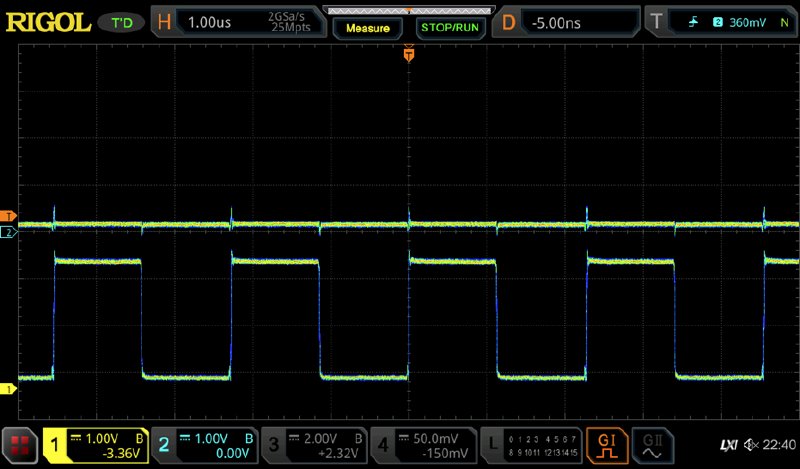 One issue I observed was significant glitching for VDD=5V. Only at VDD=4.5V and lower stable operation was observed. Presumably, overshoot generated by the amux gates is creating issues at marginal operating voltage.