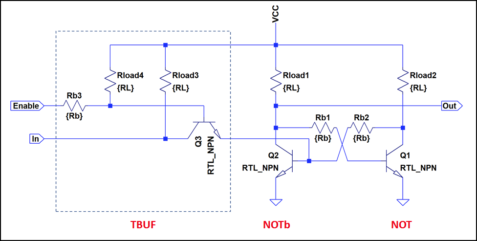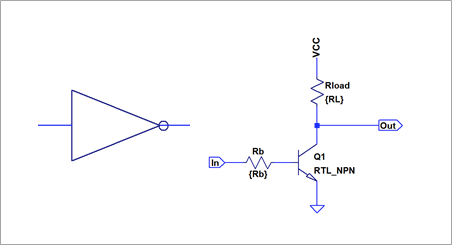 - RTL_2369: Resistor transistor logic with PMBT2369 and RL=RB=1kOhm