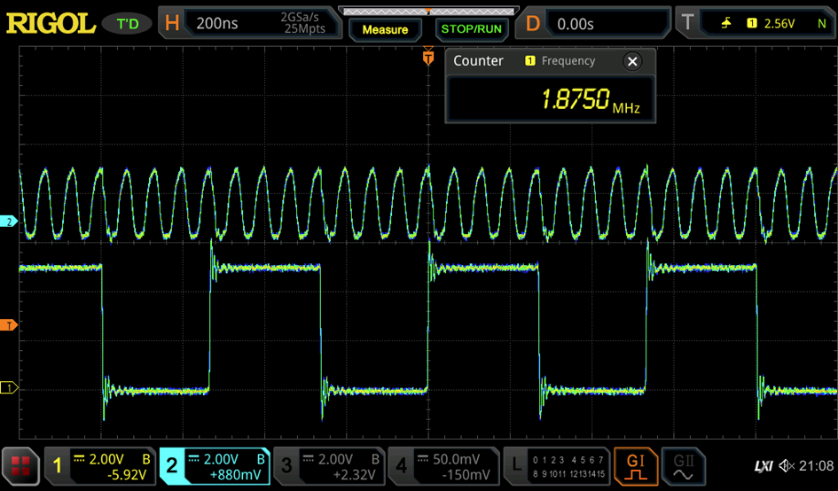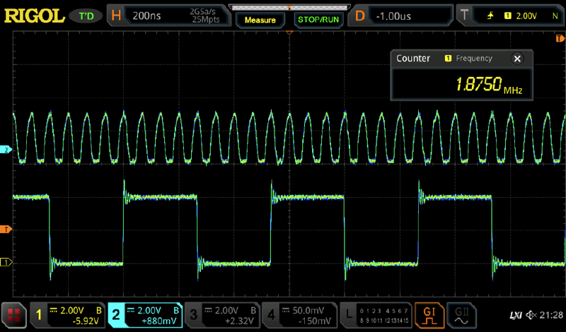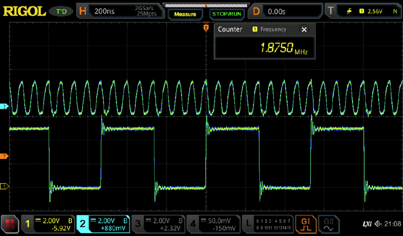 The scope image above showns the counter at 7 MHz, which is quite respectful.